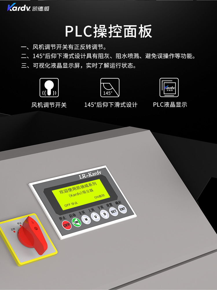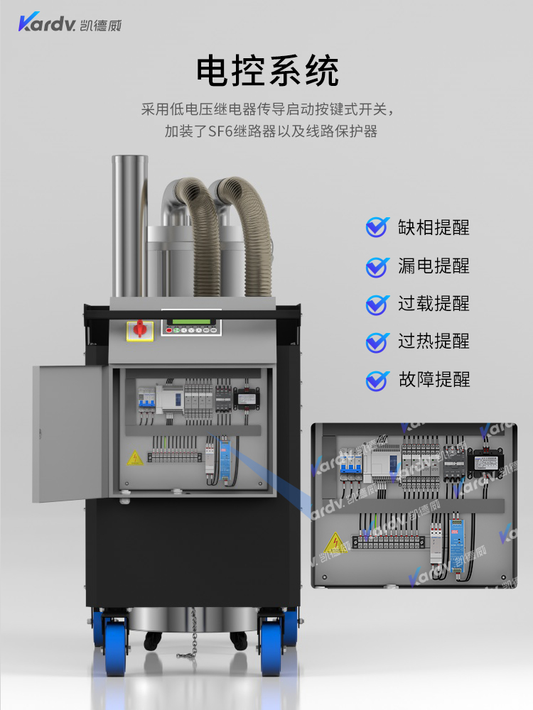 SK - F系列是我司自主研發(fā)的智能型工業(yè)吸塵器。具有以下六大亮點(diǎn): A.整機(jī)采用工業(yè)設(shè)計風(fēng)格,外形剛勁有力,做工精良美觀。 B.集塵桶固定把手設(shè)計。C.采用直徑160mm的TPE靜音前后大輪 D.電控系統(tǒng)采用凱德威自主設(shè)計帶有液晶顯示屏的智能PLC電控控制系統(tǒng) E.動力源采用凱德威FY系列定制主機(jī),并選用NSK耐高溫防塵軸承。 F.全自動電子反吹清灰系統(tǒng)具有人工免保養(yǎng),吸力強(qiáng)勁、穩(wěn)定,故障率低。 G.集塵系統(tǒng)采用100L不銹鋼材質(zhì)的上下分離桶,桶壁光滑易清理。